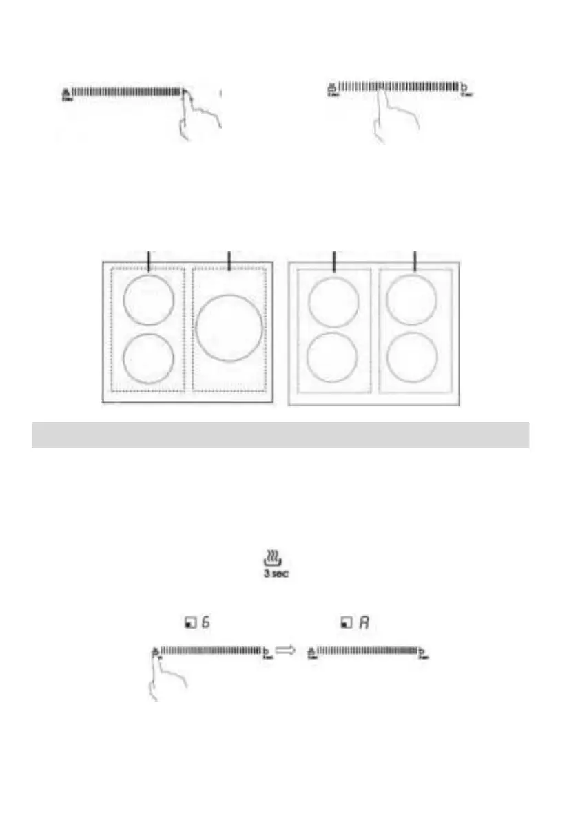 prstem podél ovladače „—“ do levého bodu, varná zóna se vrátí na stupeň výkonu, při