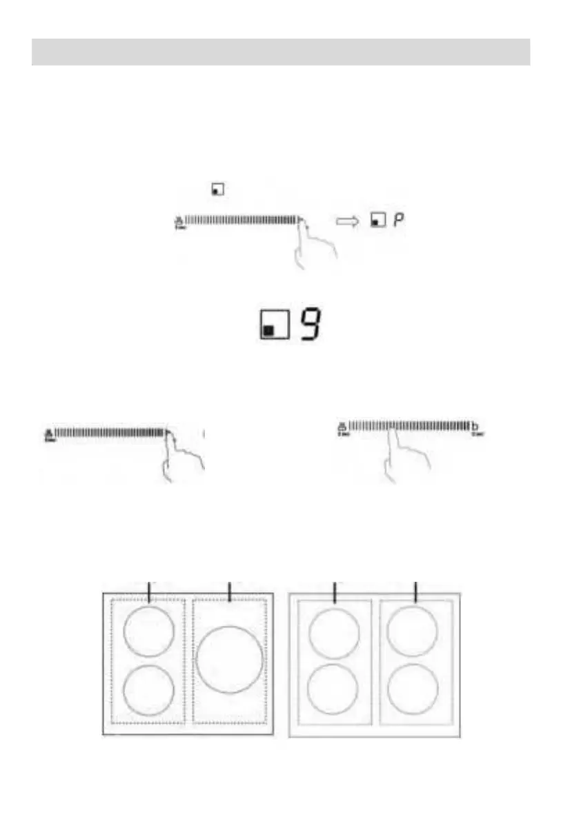 Ohrevná zóna sa vráti späť na úroveň výkonu „9“. Alebo posuňte pozdĺž „—“ k ľavému