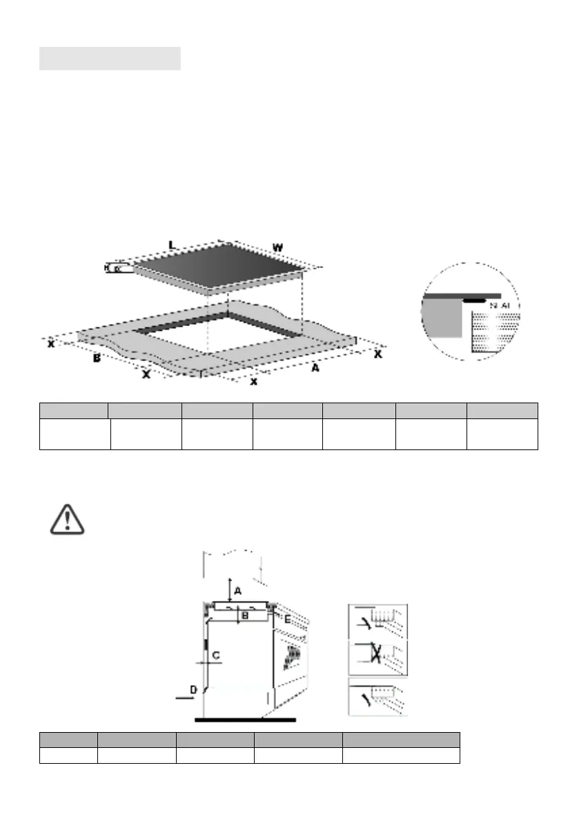 N ot a: Tra il piano di cottura e l'eventuale elem ento superiore deve