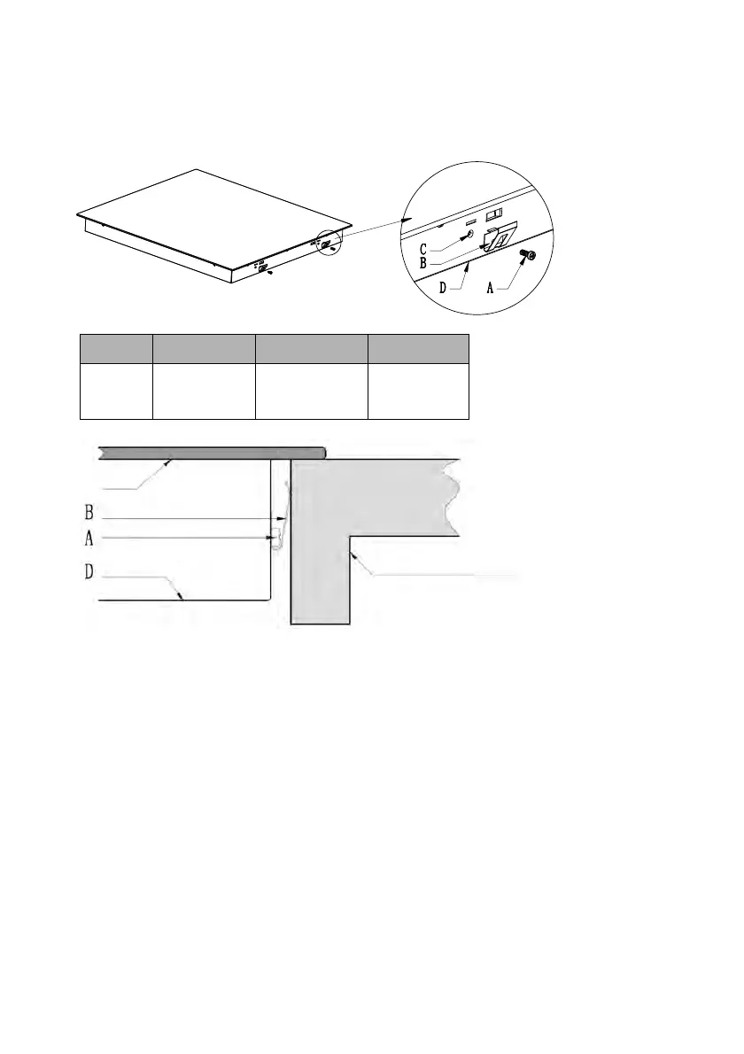 ra fijar la encimera a la encimera, atornille las 4 abrazaderas en la parte