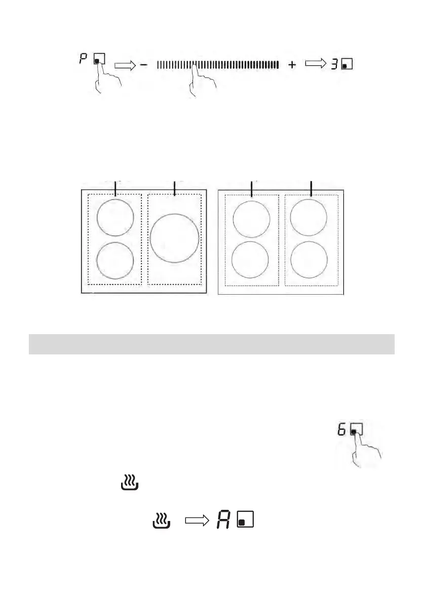 2. Toque no botão , o indicador da zona de cozedura mostrará “A”.