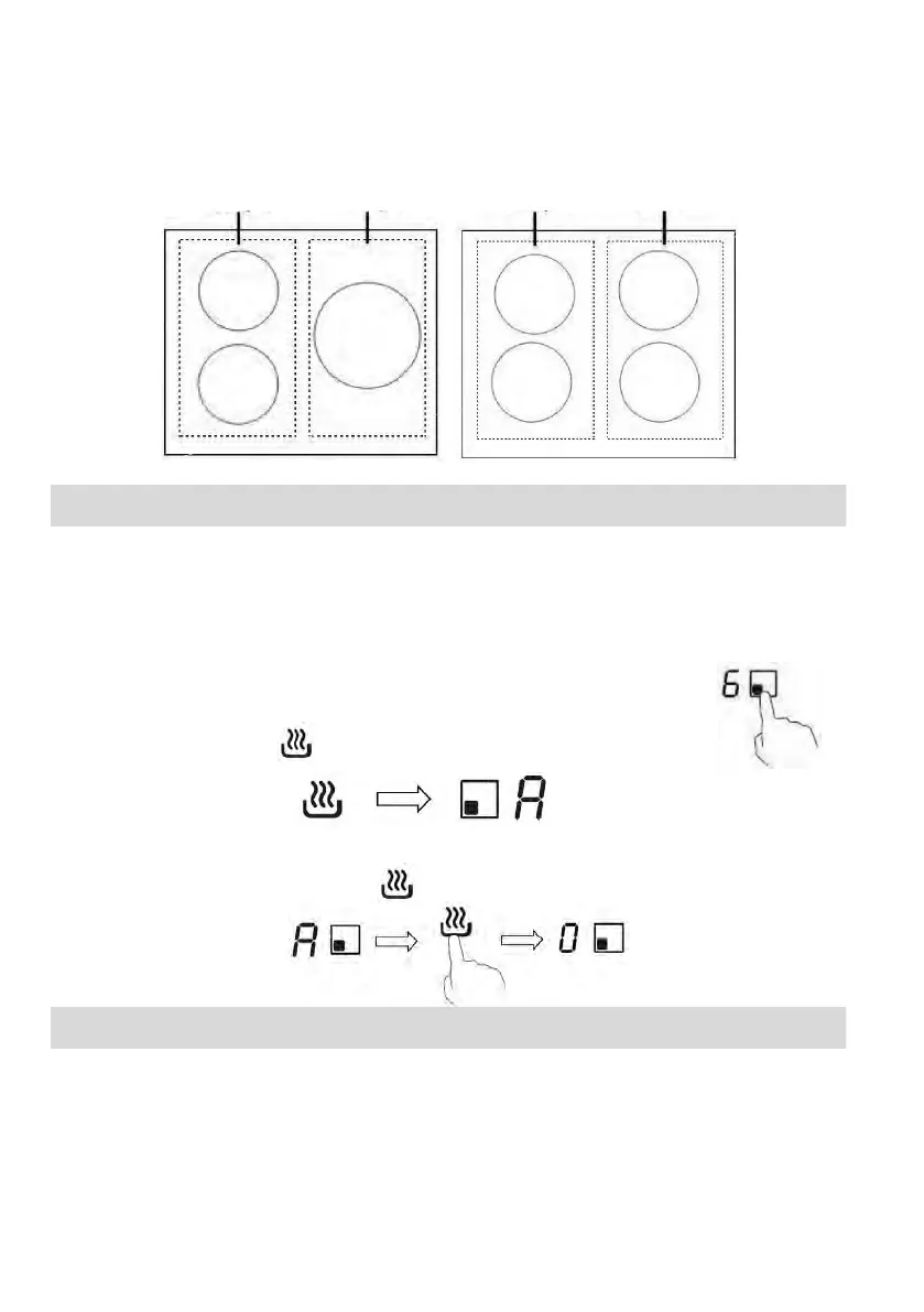 2. Dotkněte se tlačítka , indikátor varné zóny zobrazí „A“.