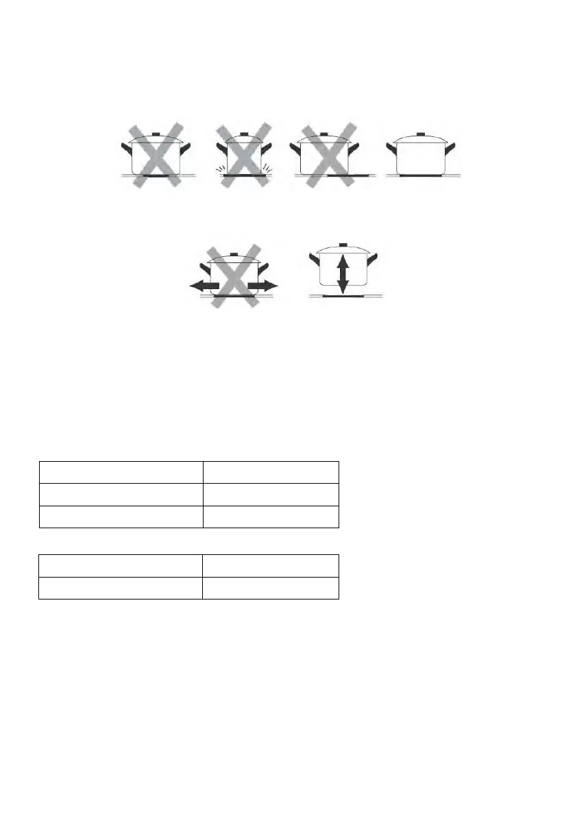 może być niższa od oczekiwanej. Zawsze wyśrodkować patelnię na strefie gotowania.