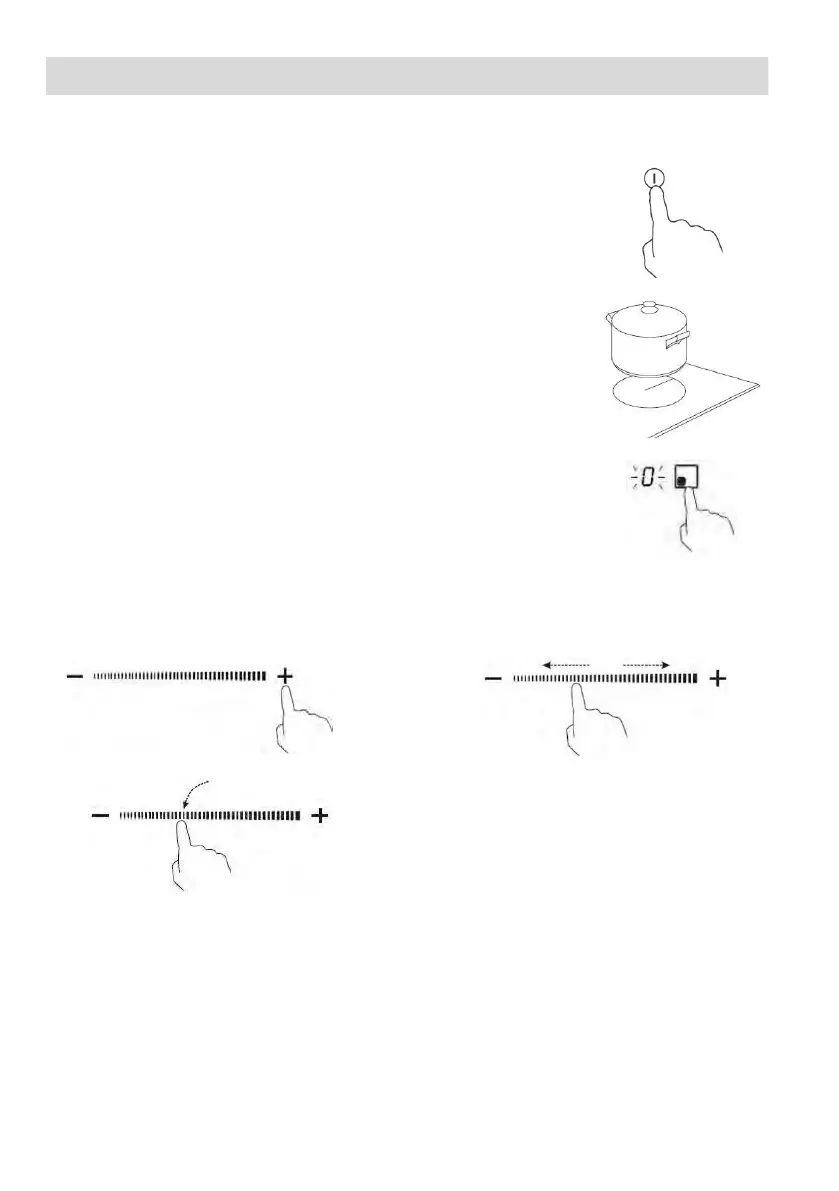 c. Przy przesuwaniu palcem wzdłuż przycisku „—” można zmieniać moc w zakresie