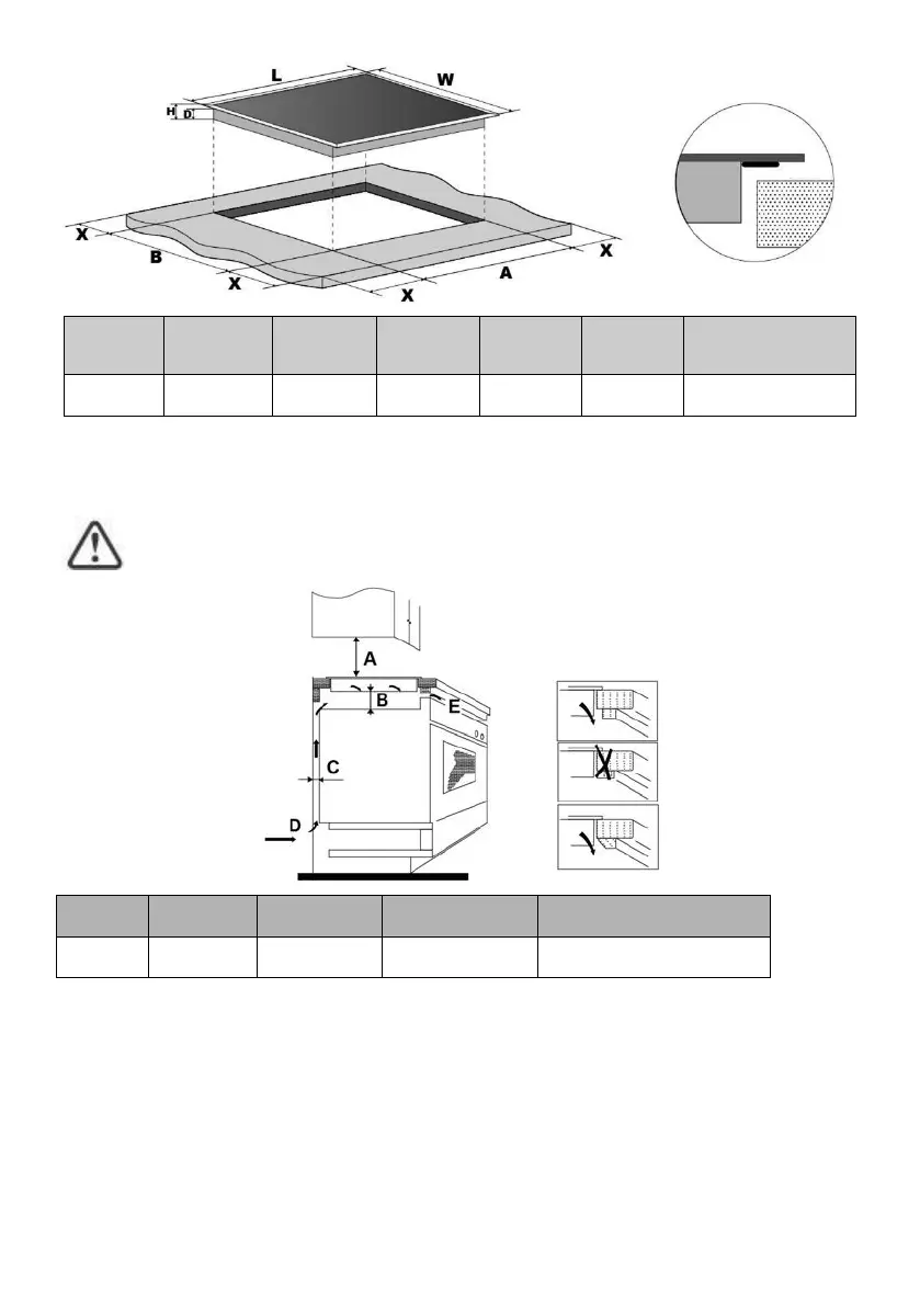 Uwaga: bezpieczna odległość pomiędzy płytą a znajdującą się nad płytą