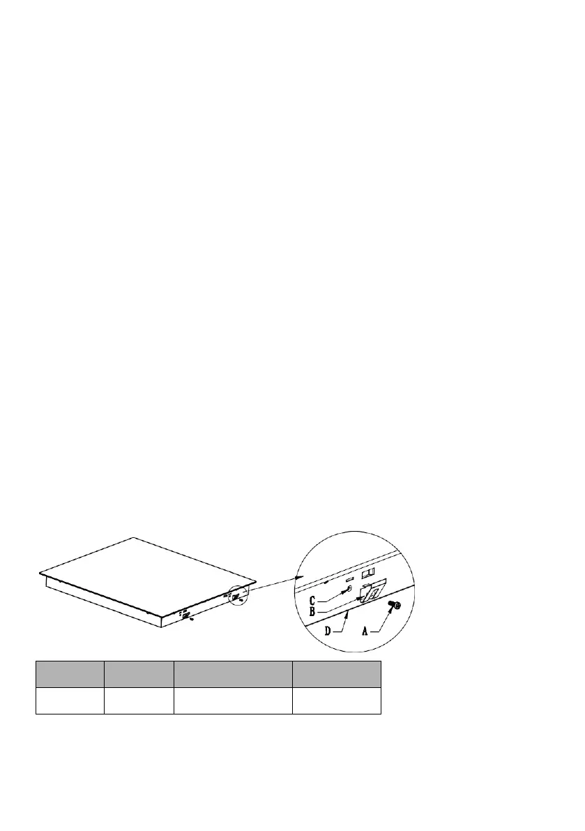 • jeśli płyta jest zainstalowana nad szufladą lub szafką, pod podstawą płyty