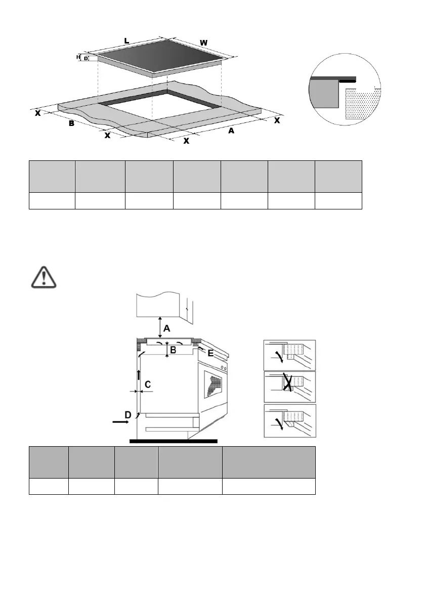 marque : La distance de sécurité entre la plaque de cuisson et le
