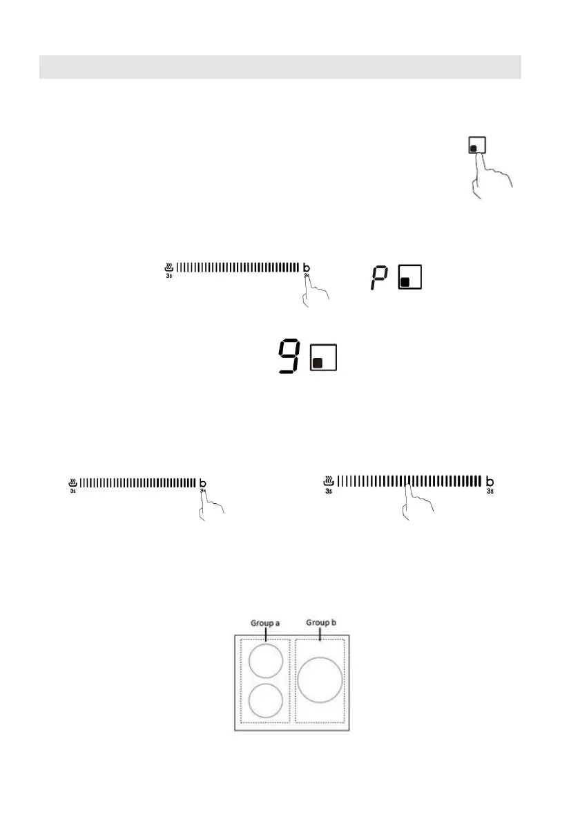 2. Touch the “b” button and hold 3 second, the heating zone will begin to work at