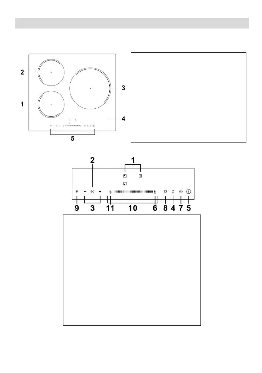 1. Commandes de sélection des zones de cuisson