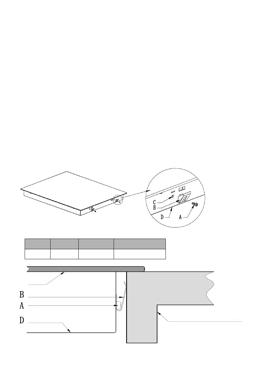 • si la table de cuisson est installée au-dessus d’un tiroir ou d’un placard, une barrière