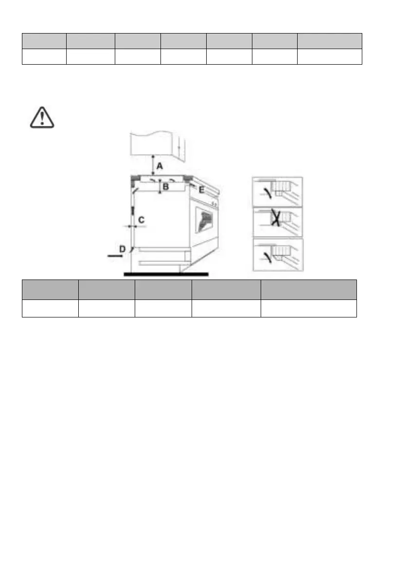 Nota: Tra il piano di cottura e l'eventuale elemento superiore deve essere prevista