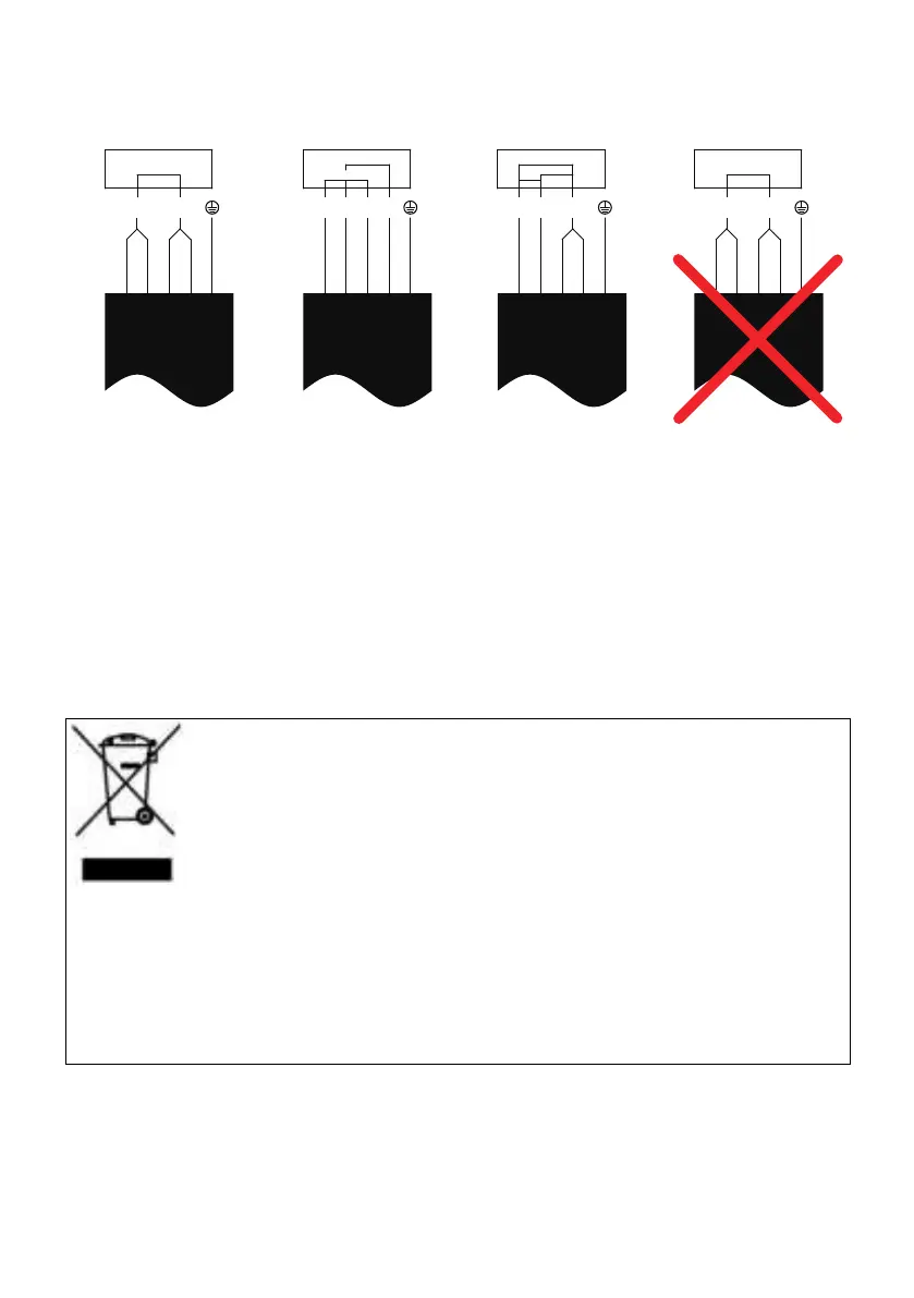 L'alimentazione elettrica deve essere collegata in conformità con la relativa normativa o un