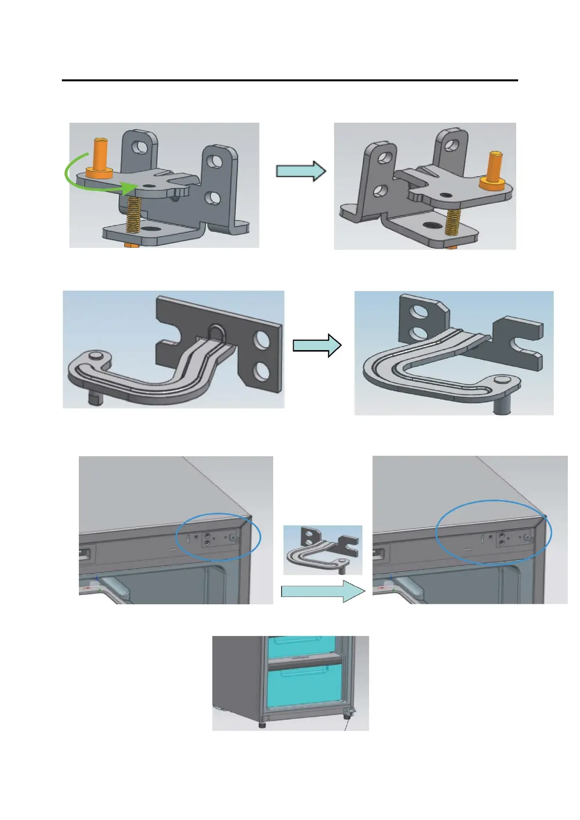 7. Das untere Scharnier an der rechten Seite des Kühlschranks montieren.