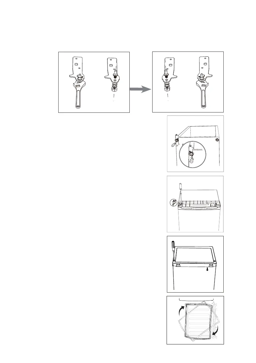 5. Skru av og fjern den nederste hengselstappen, snu braketten og skift den ut.