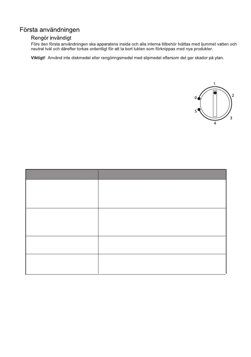 • Den invändiga temperaturen regleras av en termostat. Det finns 6