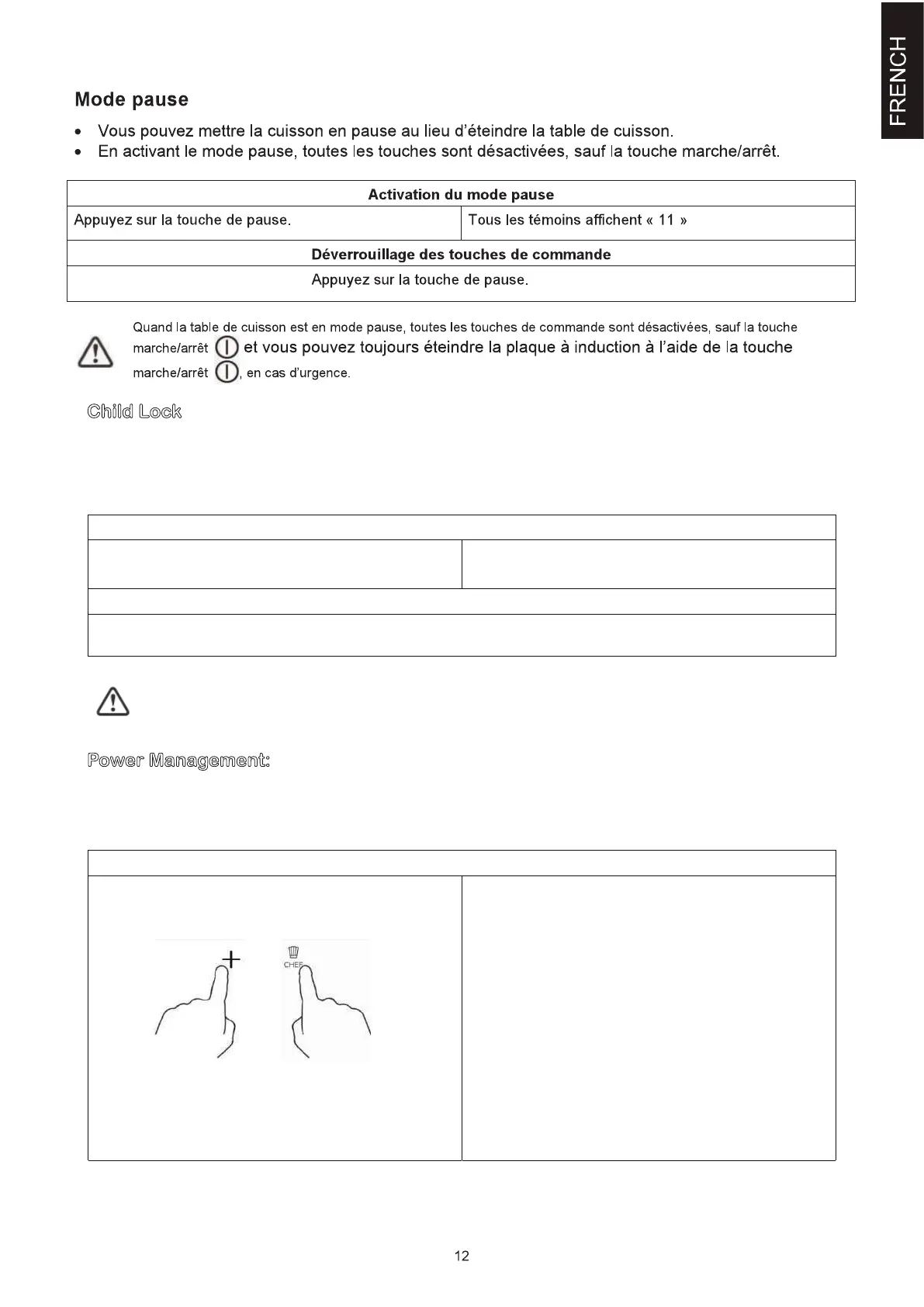 Attention: Quand l’option qui désactive les boutons est en marche, il est toujours possible d’éteindre la table de cuisson