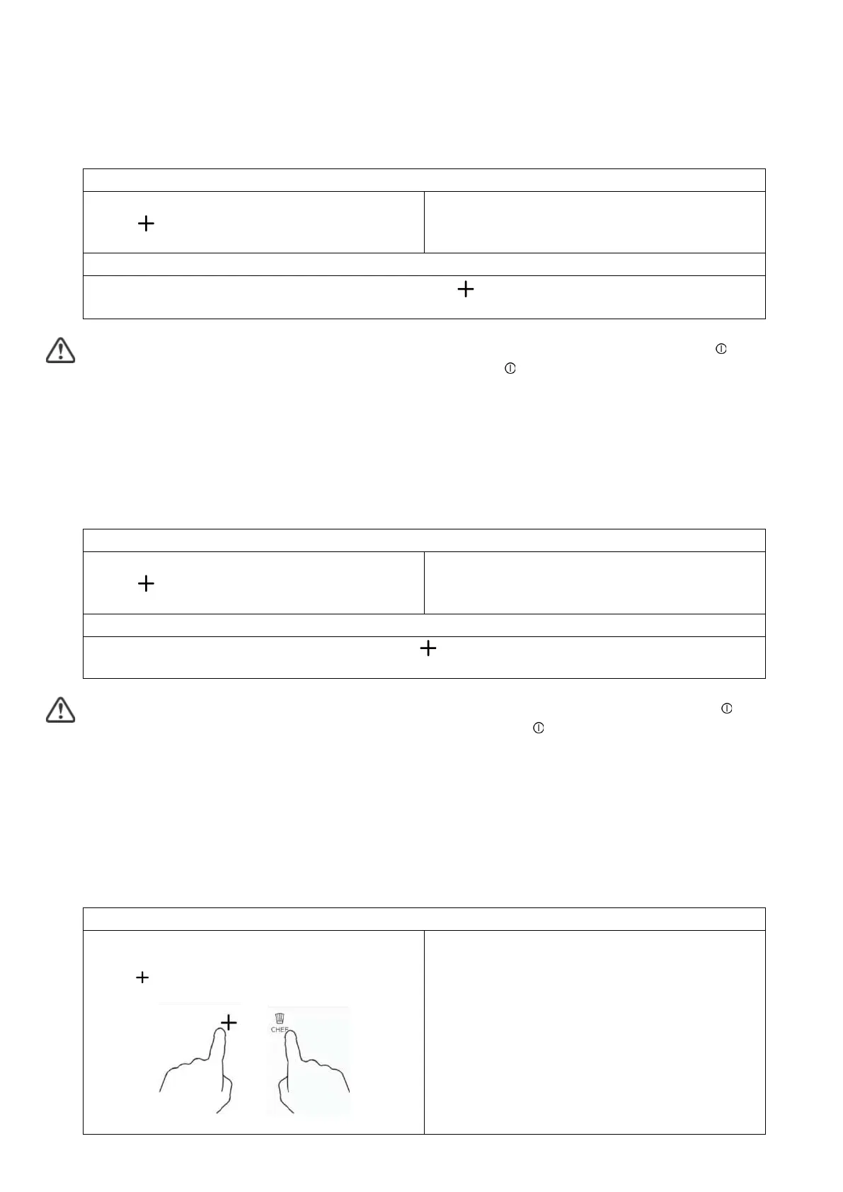 Quando il piano di cottura è in modalità pausa, tutti i comandi sono disabilitati ad esclusione di quello ON/OFF , si può