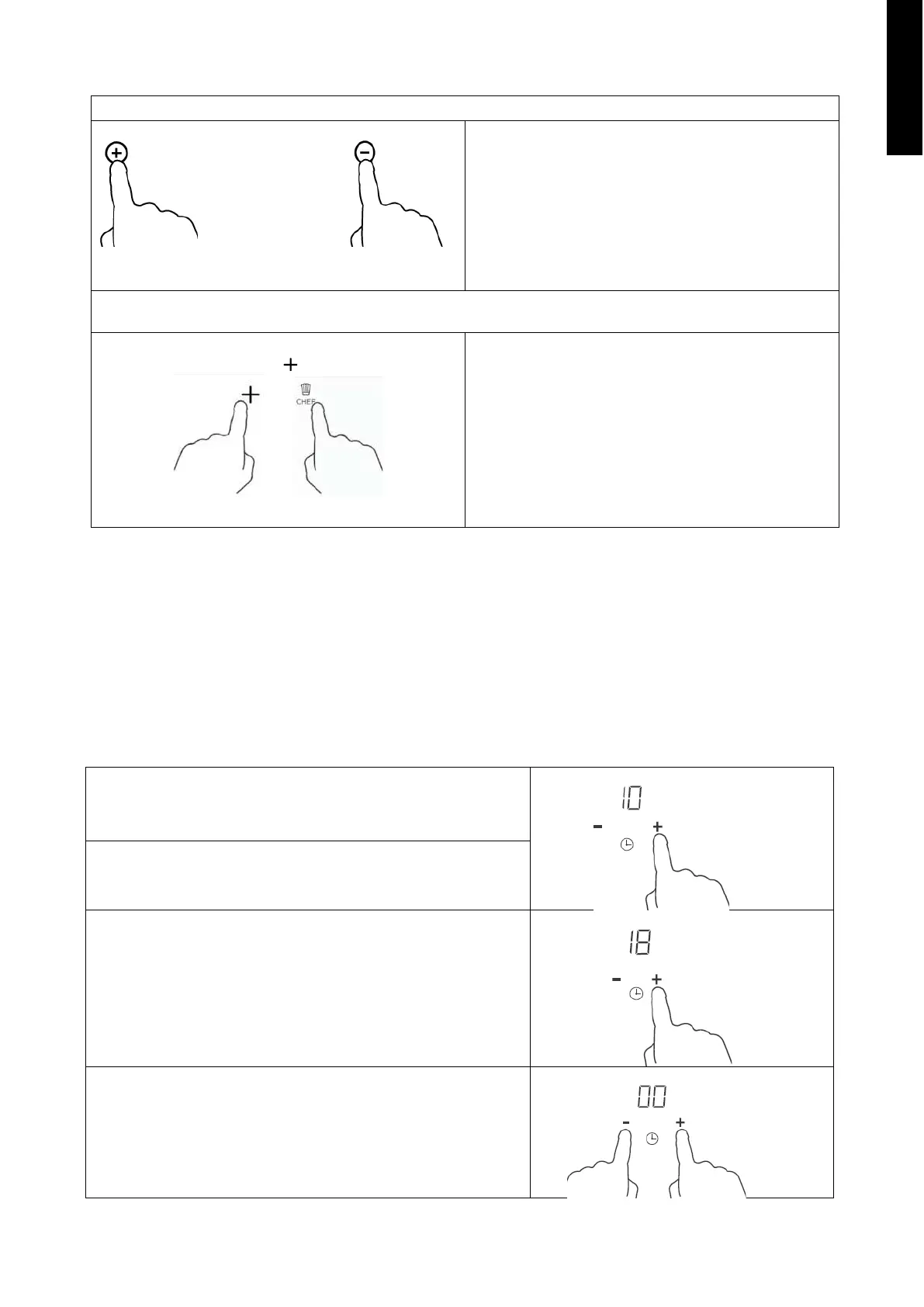 Tenere premuto il tasto a sfioro "-" o "+" del timer, il tempo