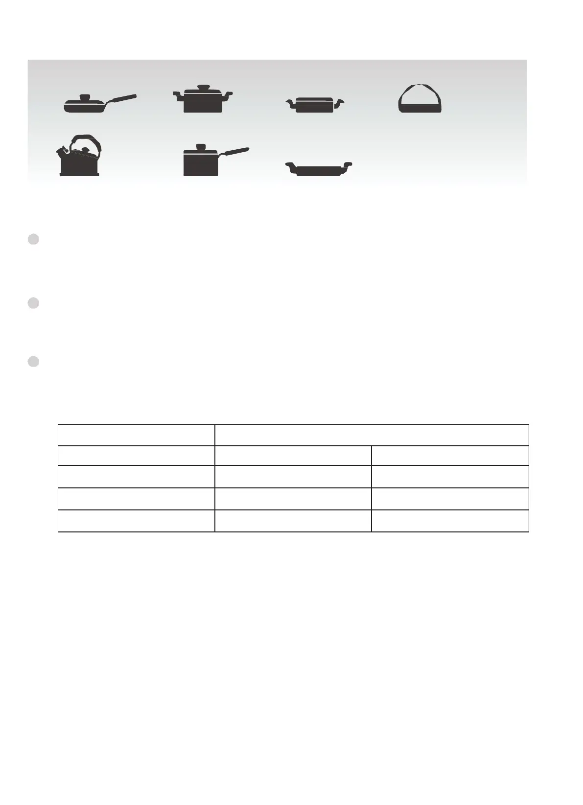 Utilizzare pentole con diametro corrispondente al grafico della zona selezionata.