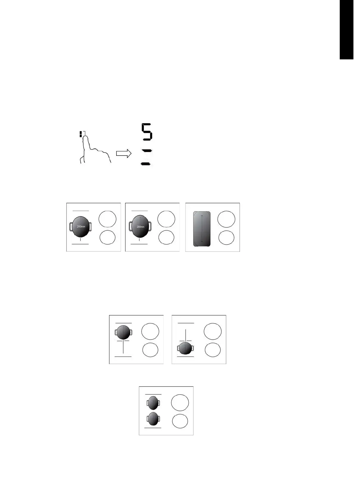 Coloque un utensilio de cocción en el lado superior derecho o en el lado inferior derecho de la zona flexible.
