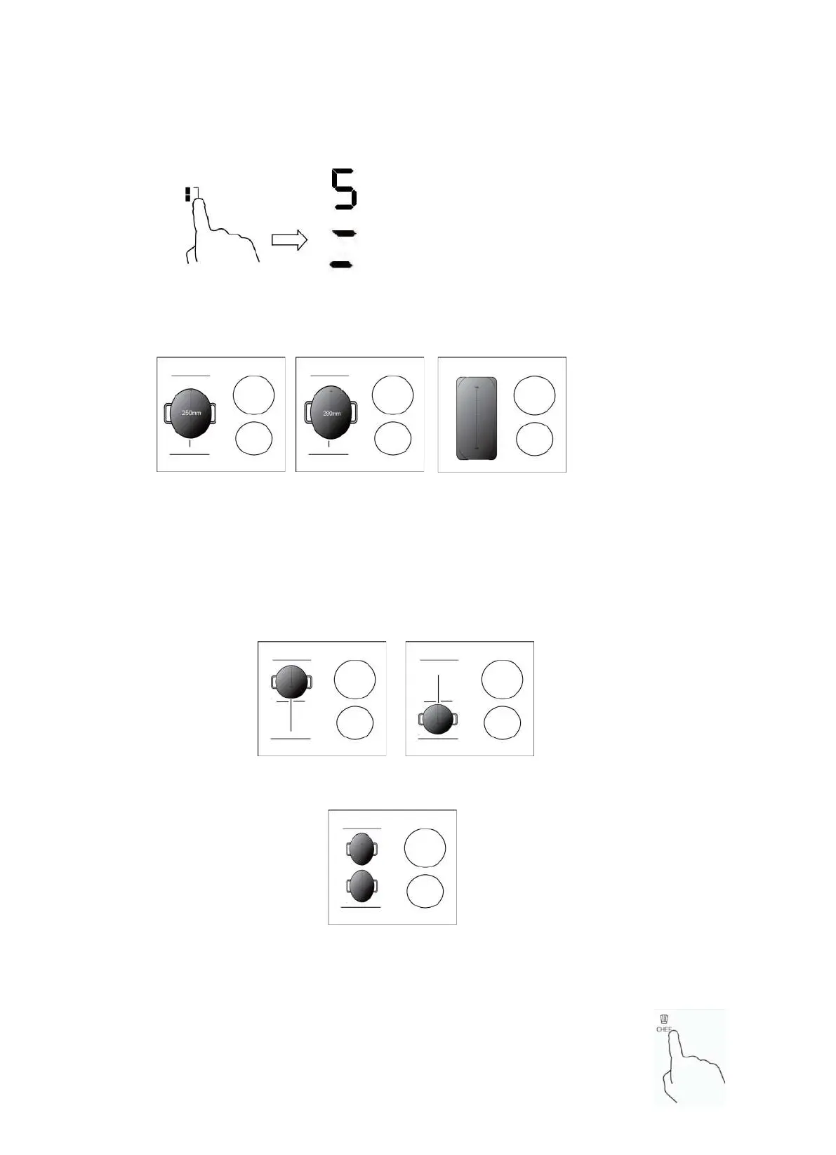 Posodo postavite na desno zgornjo ali desno spodnjo stran prilagodljivega kuhališča.