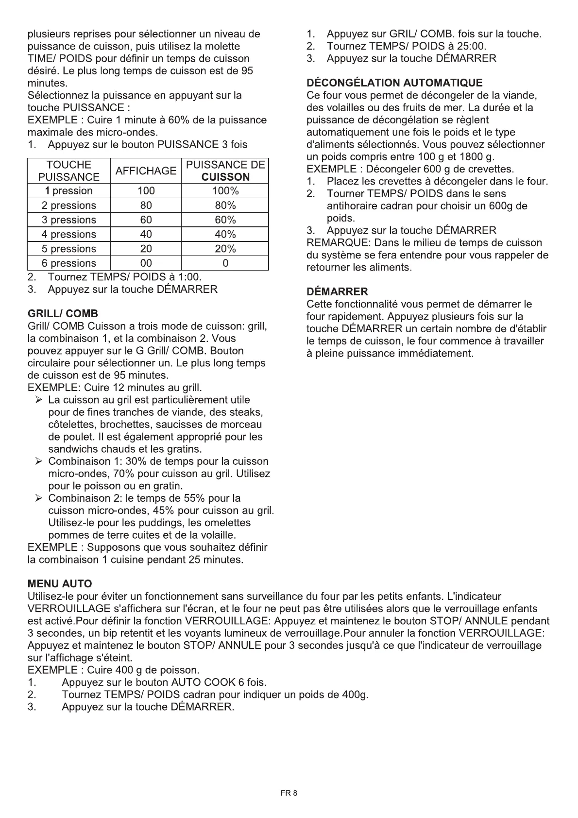 verrouillage enfant et le voyant de verrouillage