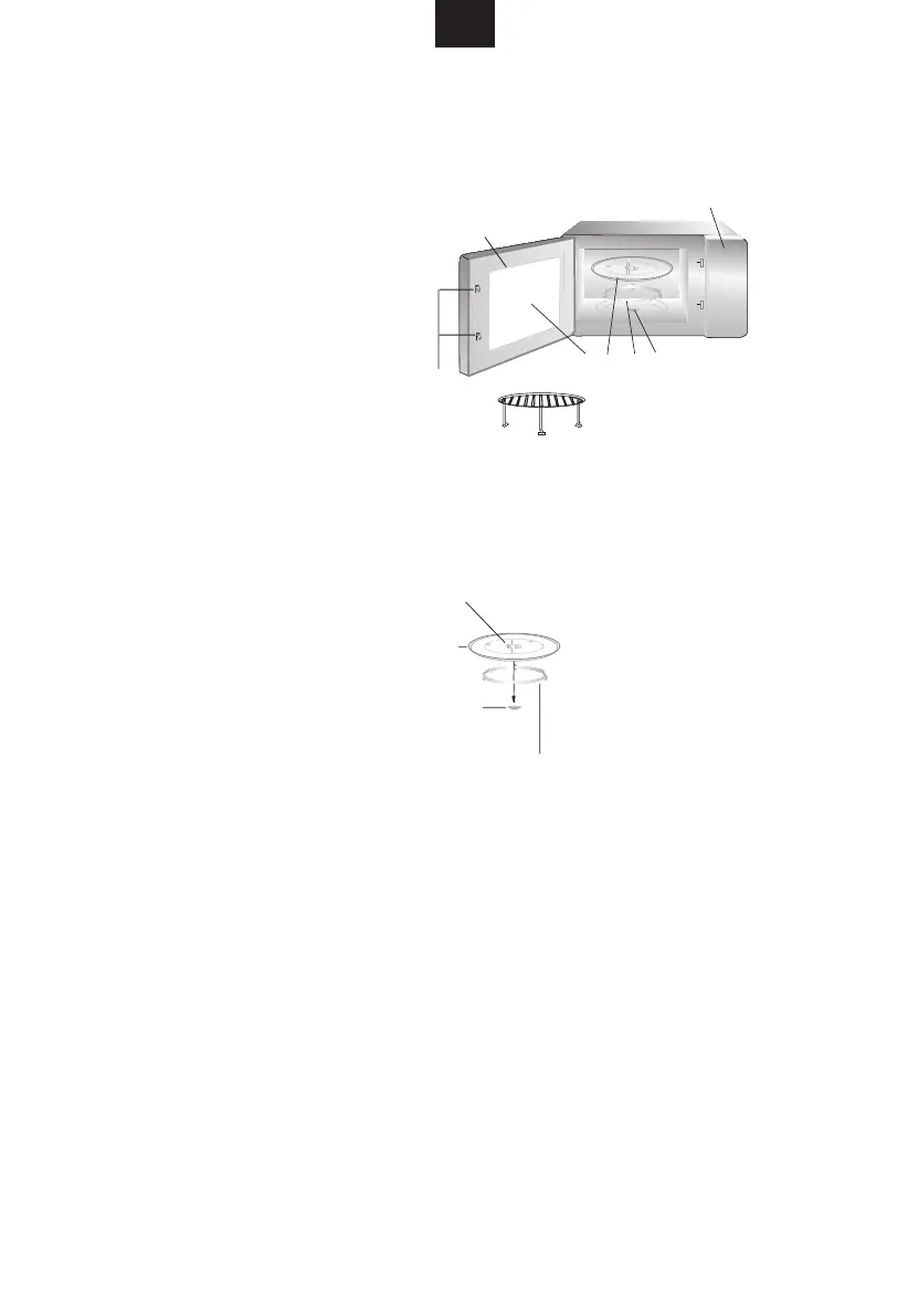 d. Si el plato de vidrio o el conjunto anillo plato giratorio se rajaran o se rompieran,