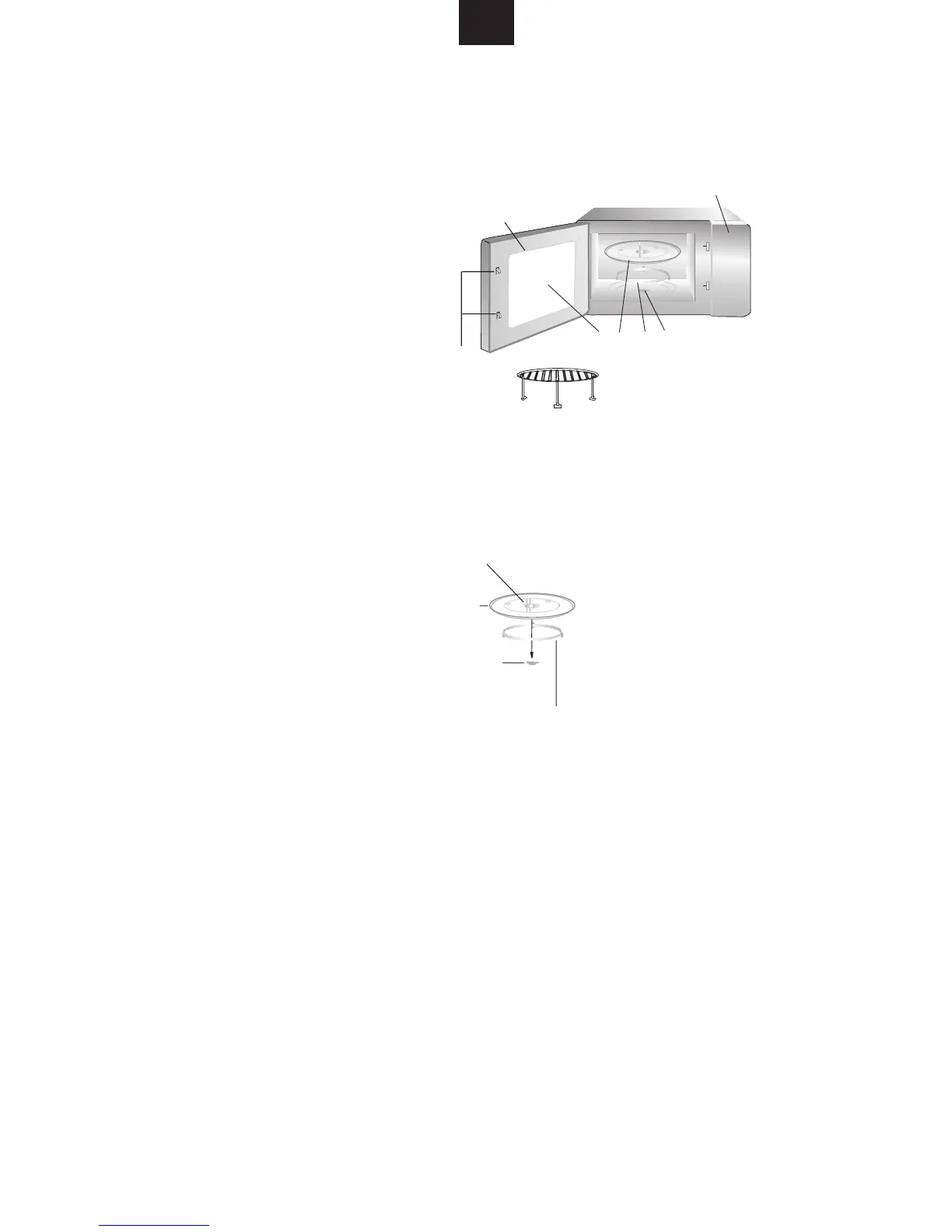 d. Si el plato de vidrio o el conjunto anillo plato giratorio se rajaran o se rompieran,
