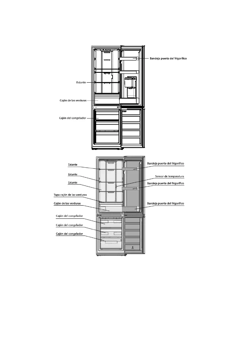 compartimento de alimentos frescos como en el compartimento de alimentos congelados. Para ello, tire del