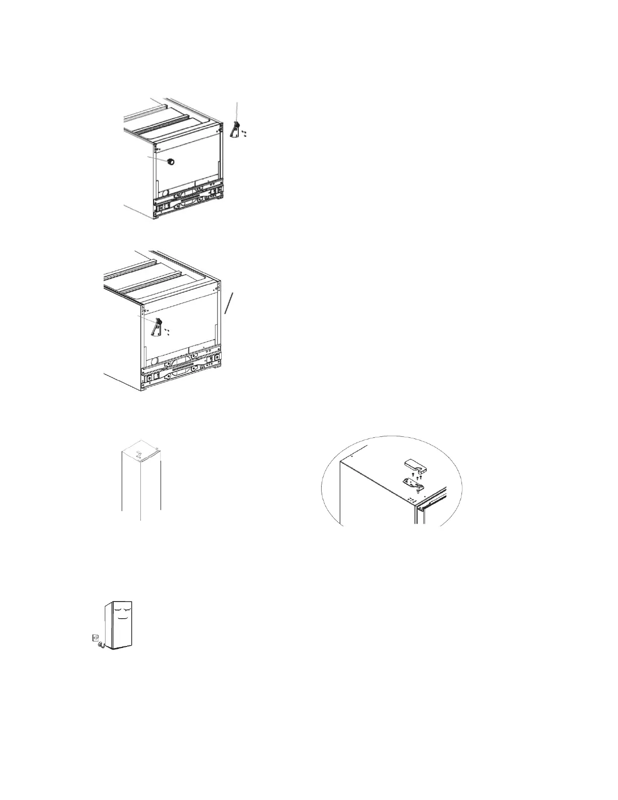 6) Zainstalować dolny zawias na dole po lewej stronie komory, a następnie zainstalować regulowaną nóżkę po drugiej stronie;