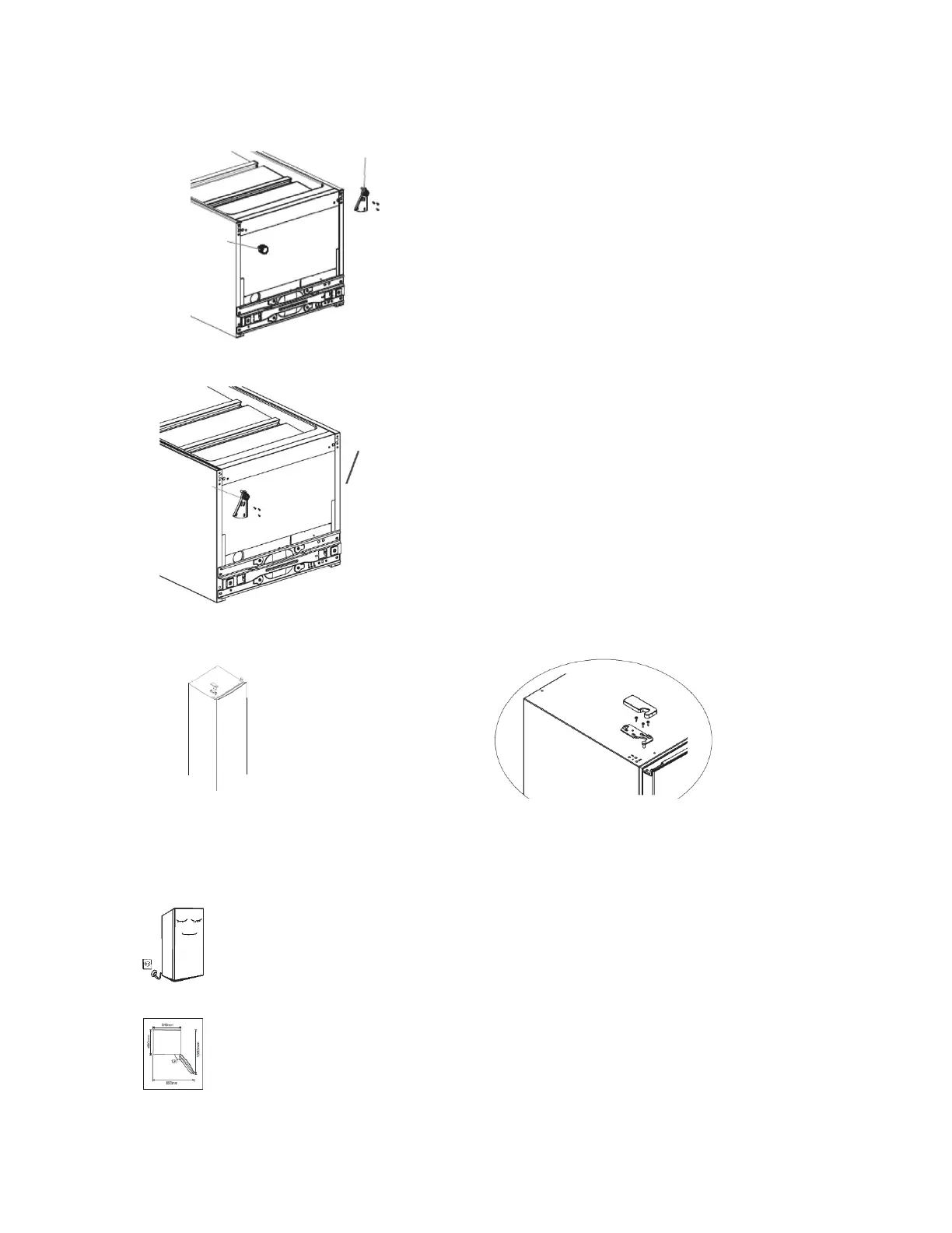 6) Montați balamaua inferioară pe partea stângă a dulapului, apoi montați piciorul reglabil pe cealaltă parte;
