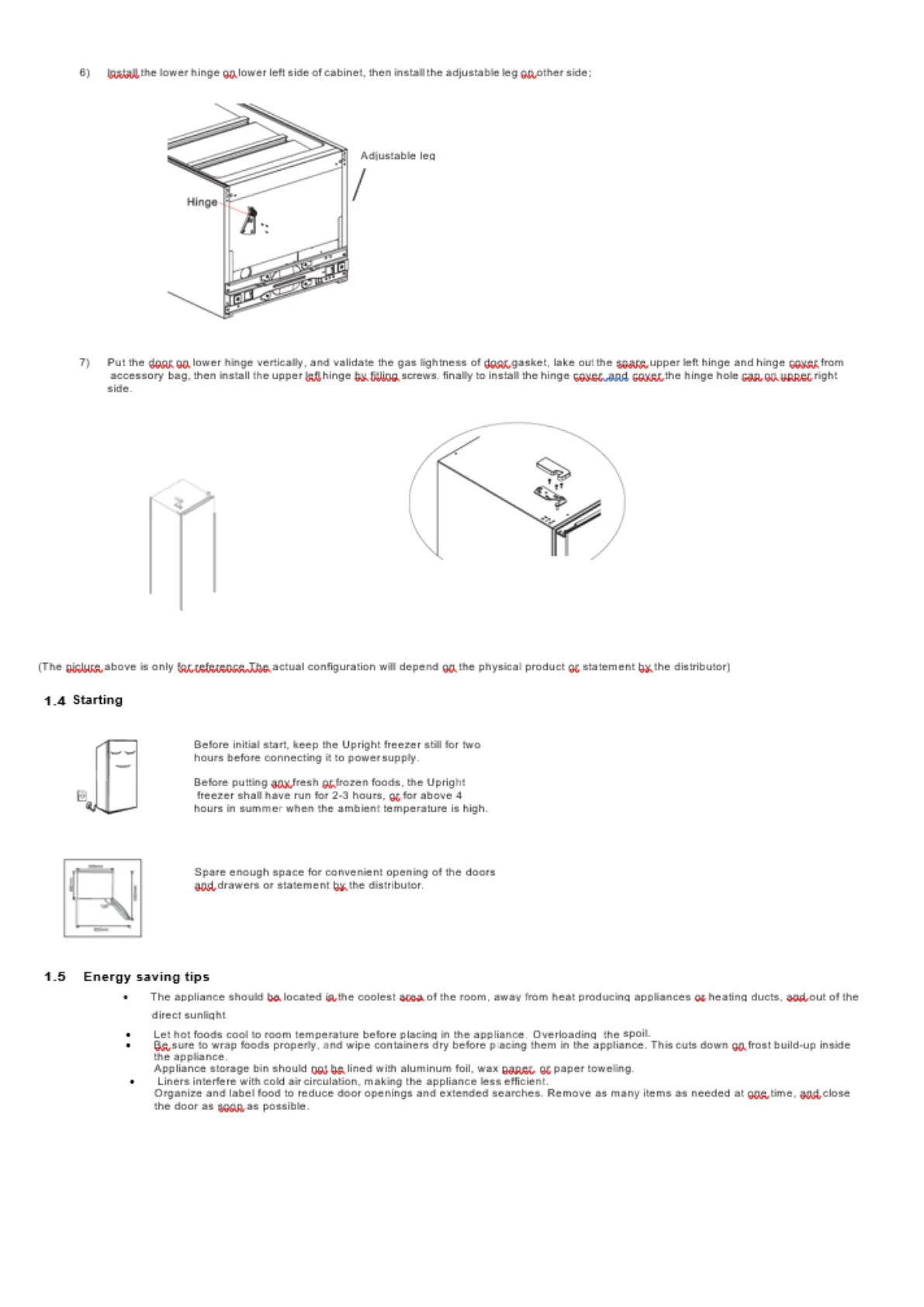 Candy CMIOUS 5142 WH - Starting the Freezer; Energy Saving Tips