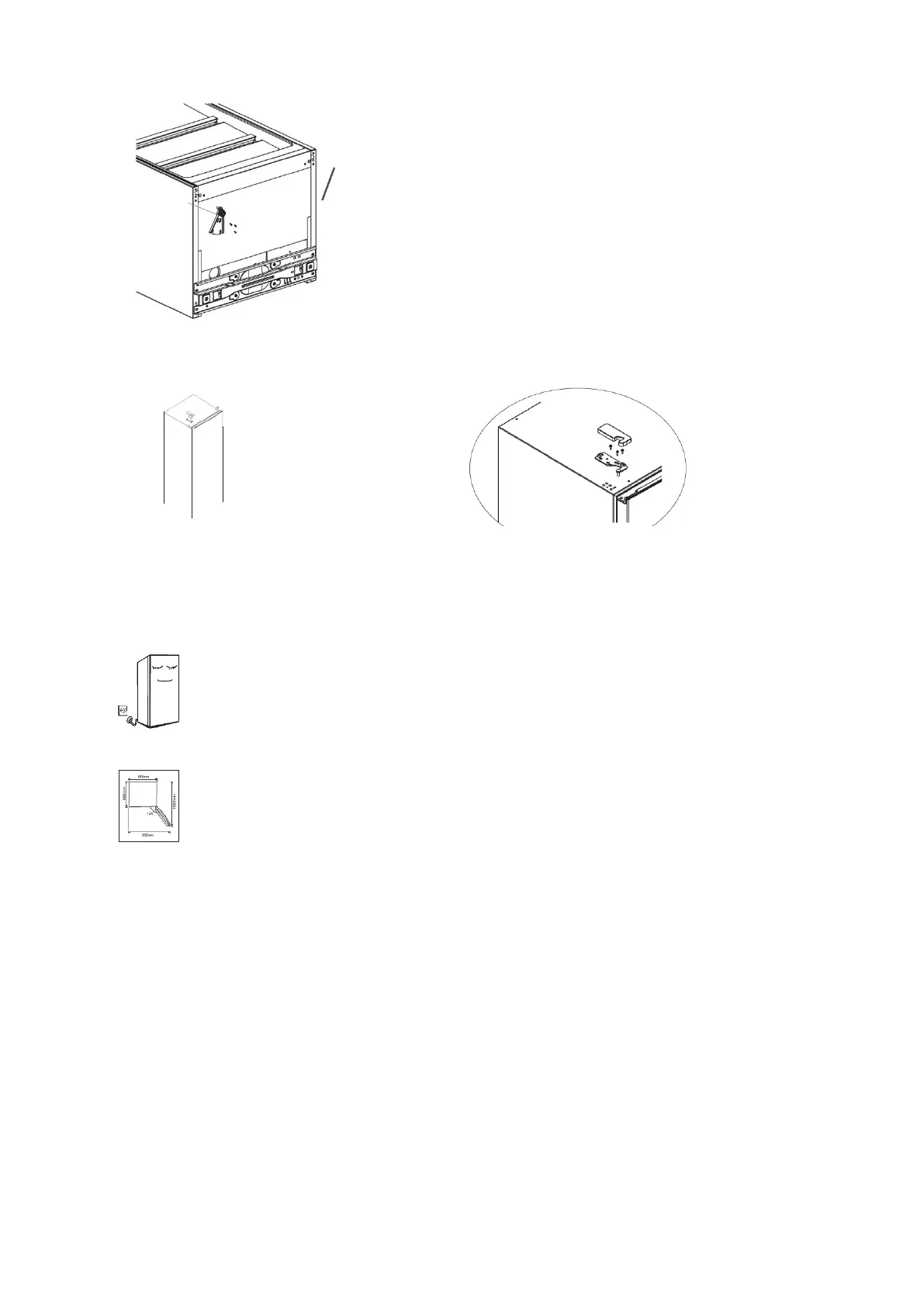 Das untere Scharnier an der unteren linken Ecke des Schranks anbringen und dann den Stellfuß auf der anderen Seite montieren.