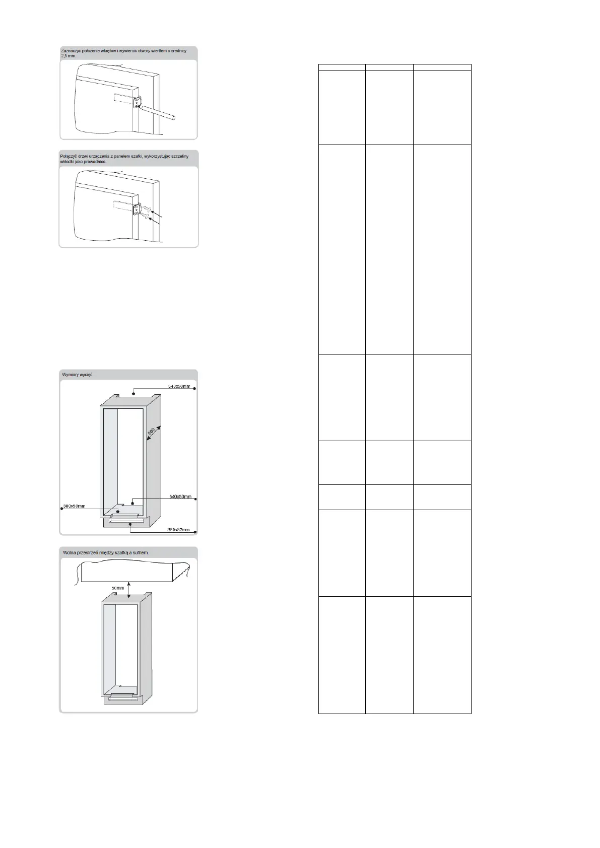 Po zabudowaniu urządzenia, dosunąć tył szafki do ściany tak, by uniemożliwić