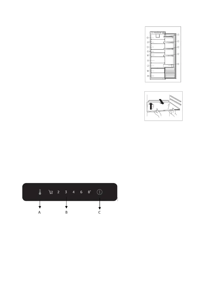 koelgedeelte. Om de plank te verplaatsen, tilt u het achterste gedeelte
