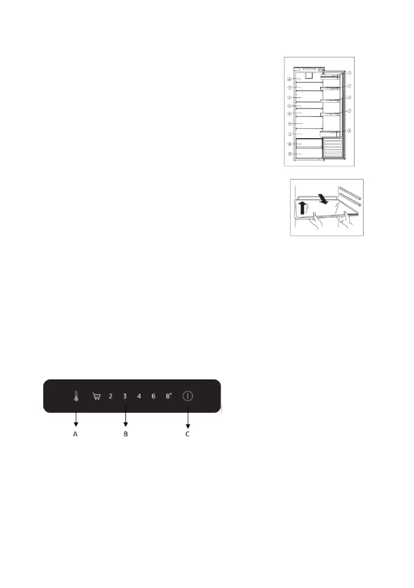 αποθήκευσης στο τμήμα ψυγείου. Για να μετακινήσετε το ράφι, σηκώστε