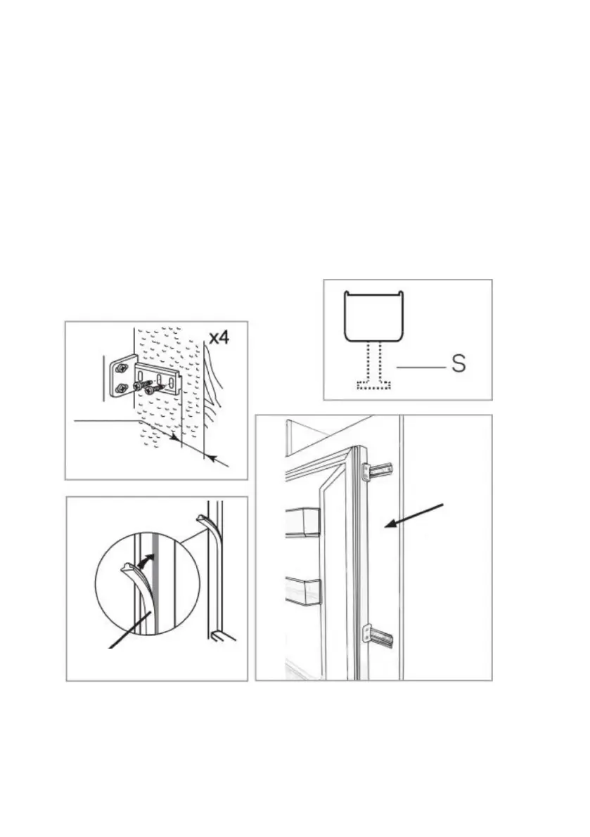 • Uistite sa, že medzi stranou bez závesov a stenou skrinky je medzera 3 až 4 mm.