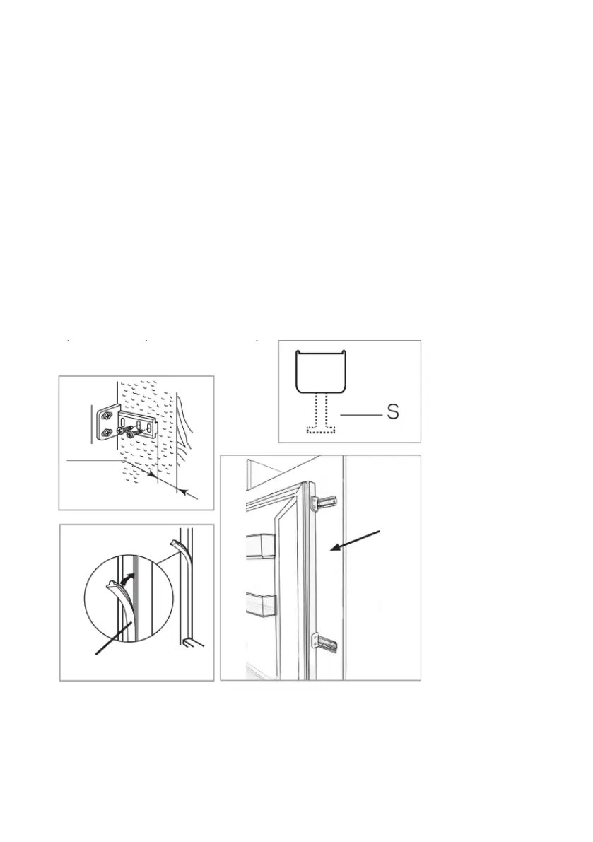 • Zwischen der Seite ohne Scharniere und der Korpuswand muss ein Abstand von 3 bis 4 mm