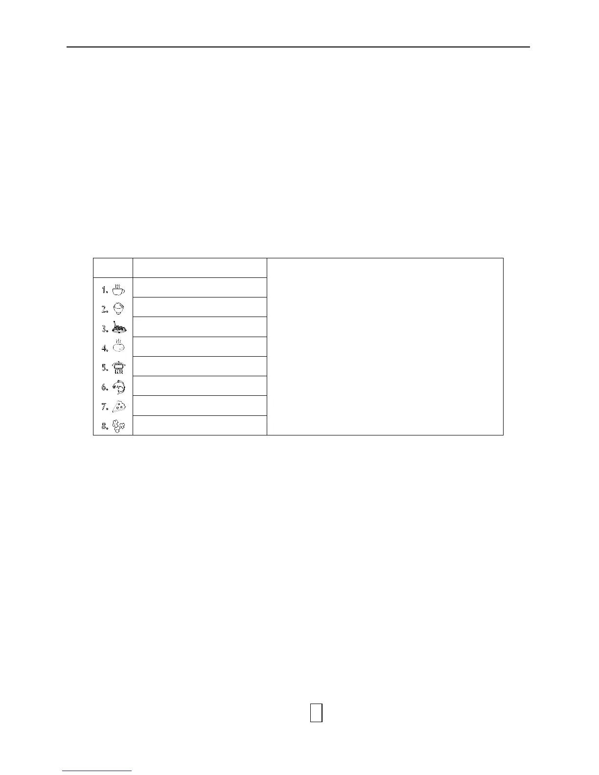 For food or the following cooking mode, it is not necessary to program the duration and the cooking power.