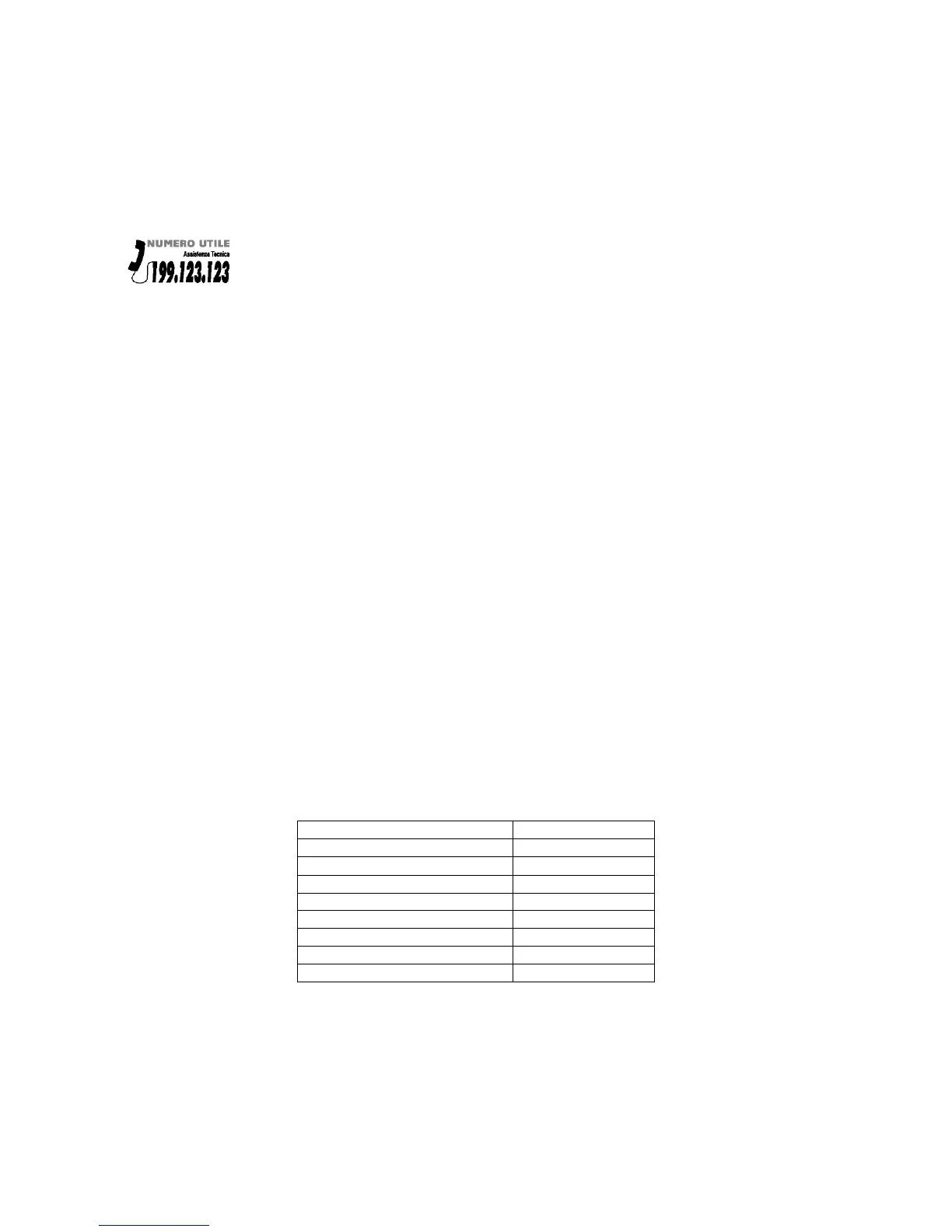 E’ indispensabile che comunichi al Servizio Assistenza Tecnica Autorizzato la sigla del prodotto ed il numero di