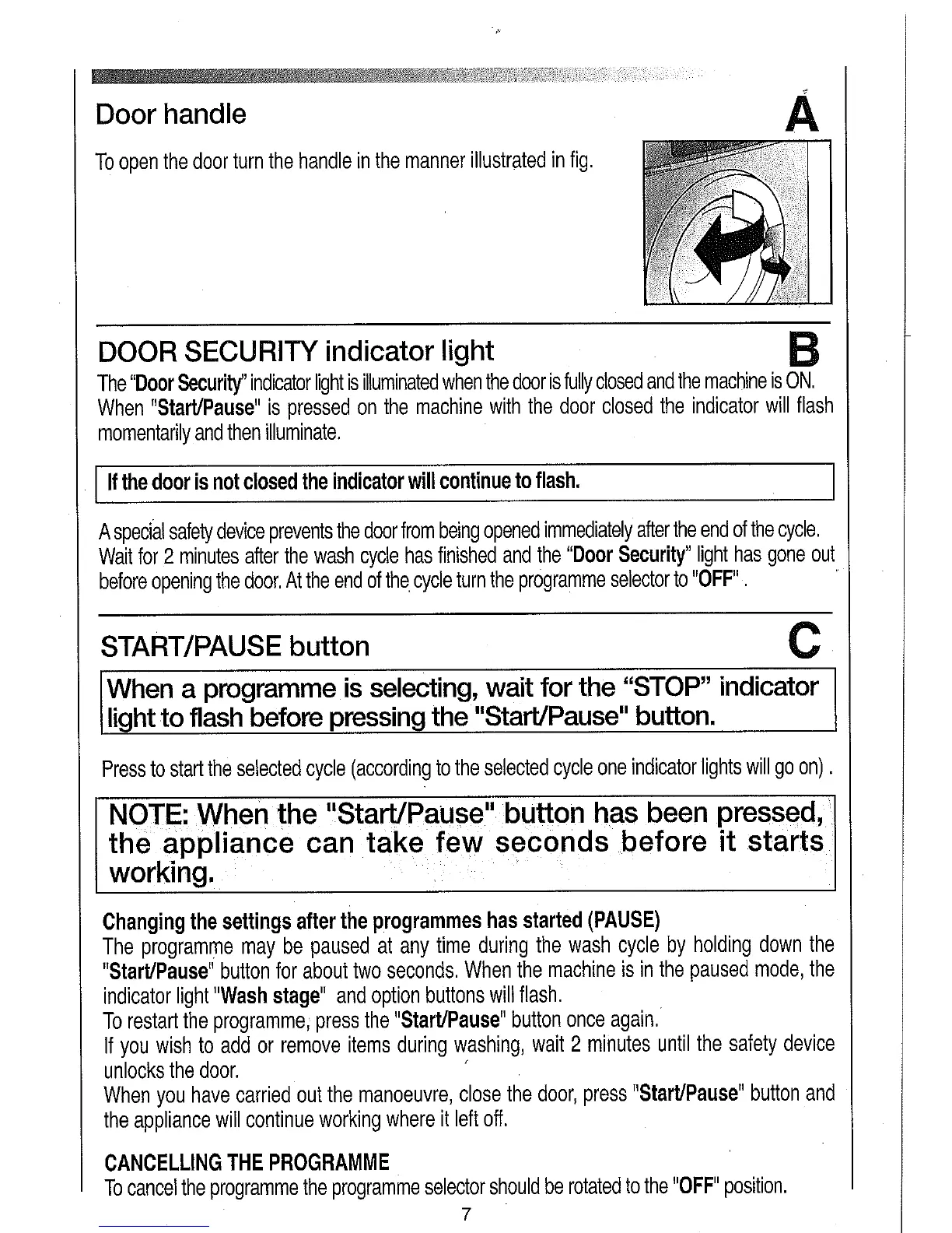 Candy CNA 166 - Programme Selection and Operation