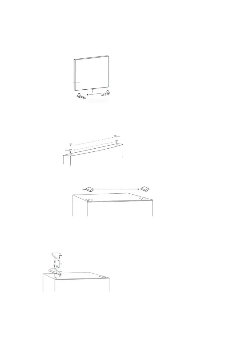 straně skříně. Než utáhnete šrouby horního závěsu, ujistěte se, že vrchní strana