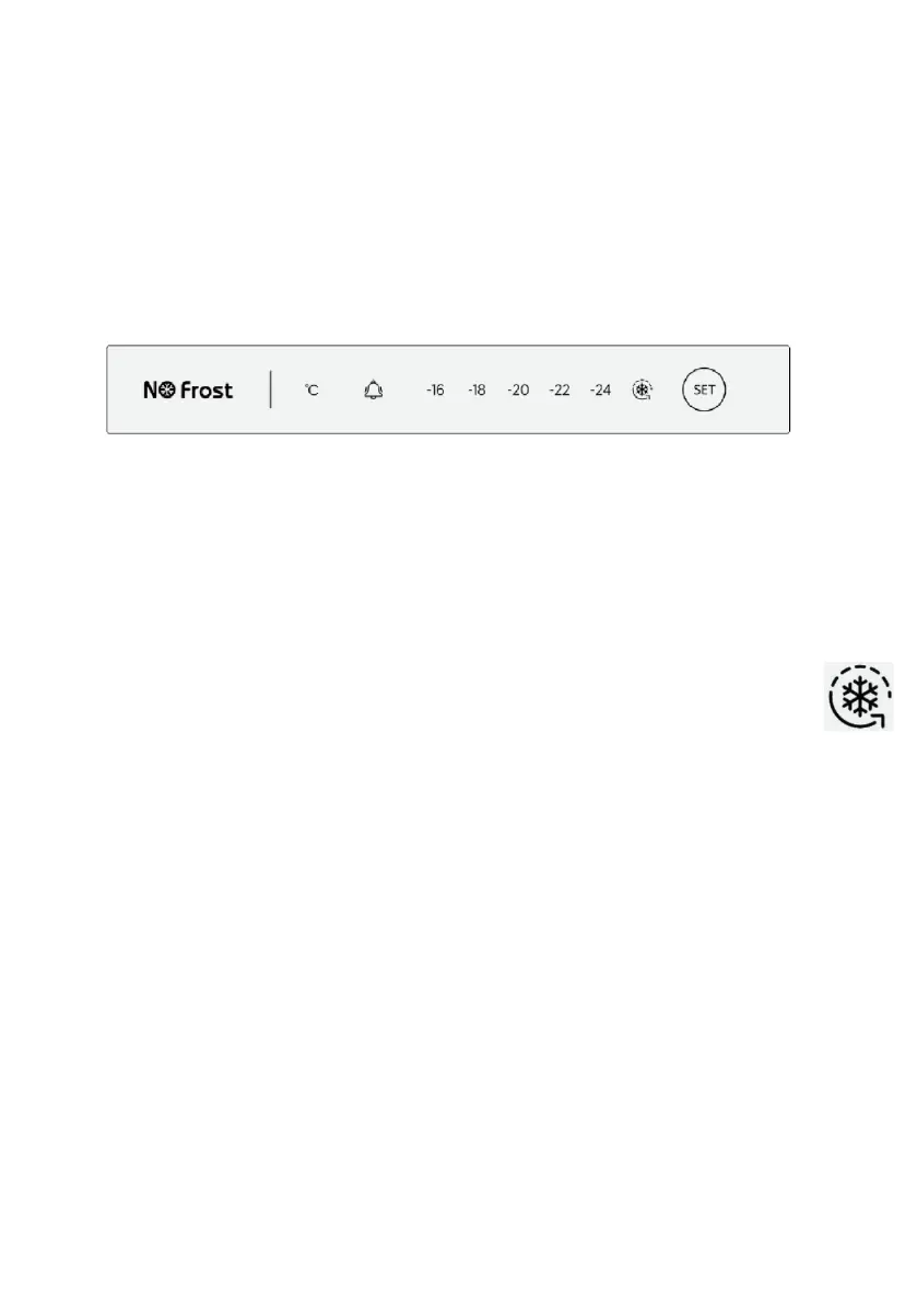 Temperaturindstillingerne cykler som følger: “-16 ° C→-18 ° C→-20 ° C→