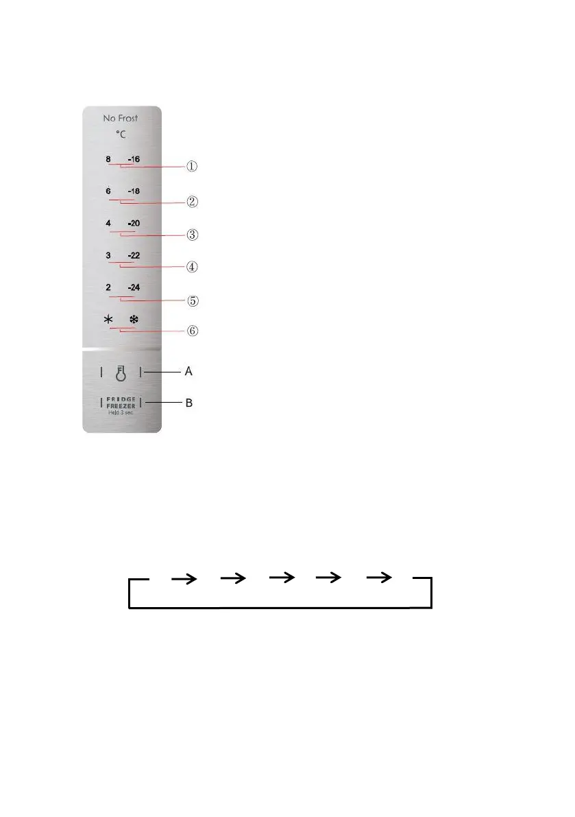 Tenere premuto per 3 secondi il pulsante dell'interruttore Frigo/Congelatore. Le icone delle temperature