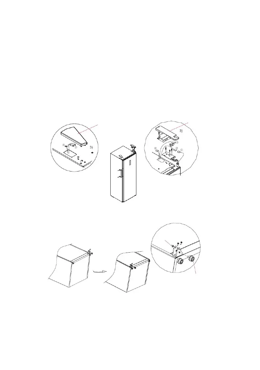 druhou stranu a potom smontujte celou sestavu závěsu na druhé straně chladničky.