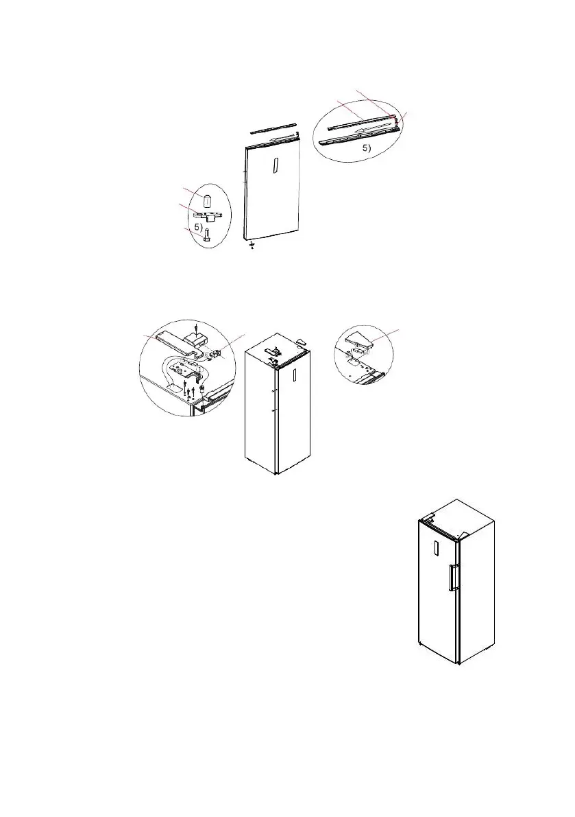 Ze sáčku s příslušenstvím vyberte levý horní závěs a kryt levého horního závěsu. Nasaďte dveře