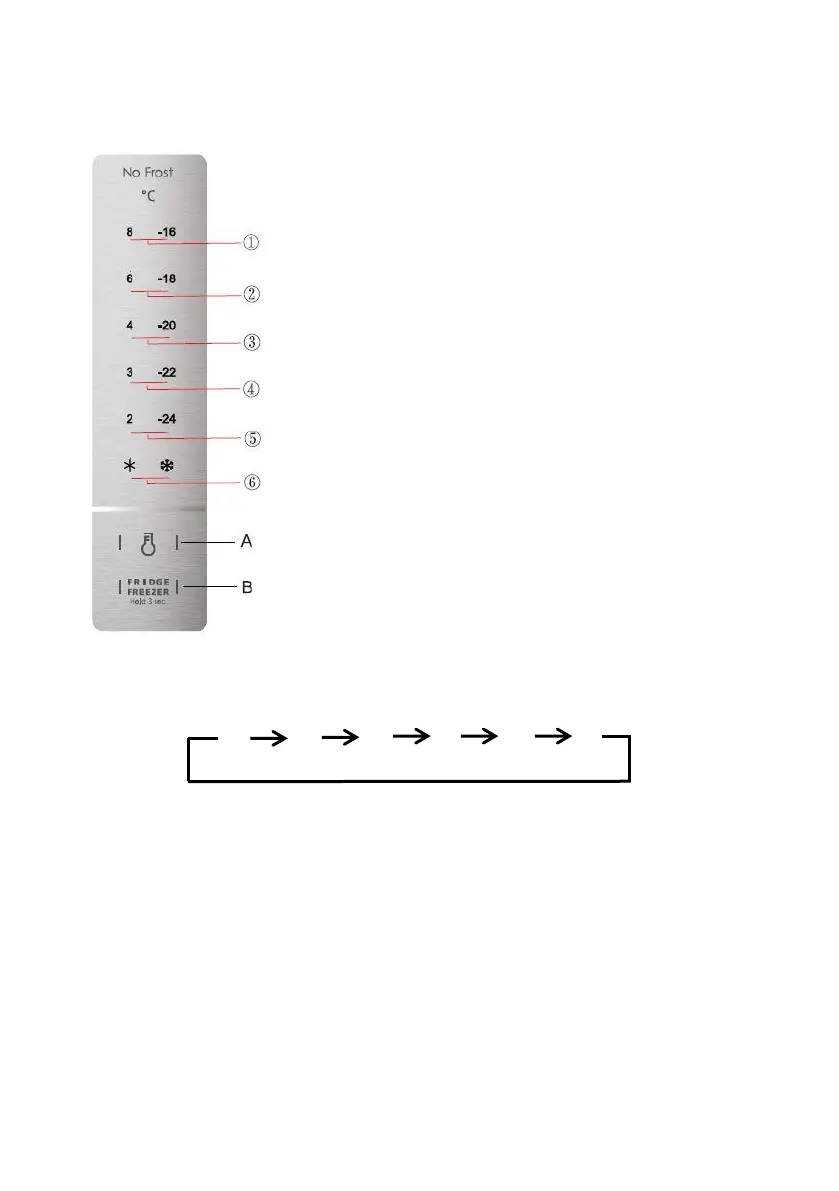 Na 3 sek. stlačte tlačidlo chladničky/mrazničky (B), rozsvietia sa