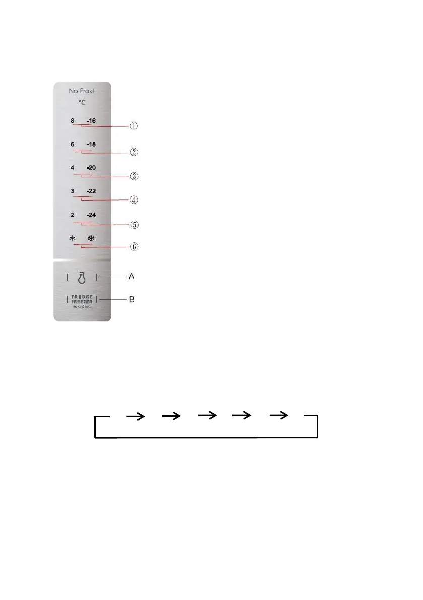 Πατήστε το κουμπί διακόπτη ψυγείου/καταψύκτη (B) για 3 δευτερόλεπτα, τα αντίστοιχα εικονίδια