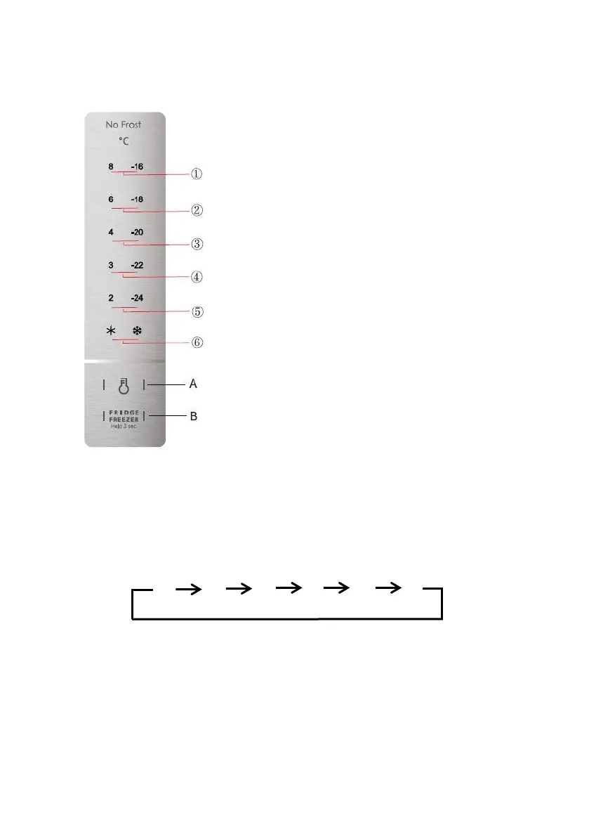 Pulse la tecla de conversión frigorífico/congelador (B) durante 3 segundos, los iconos de temperatura