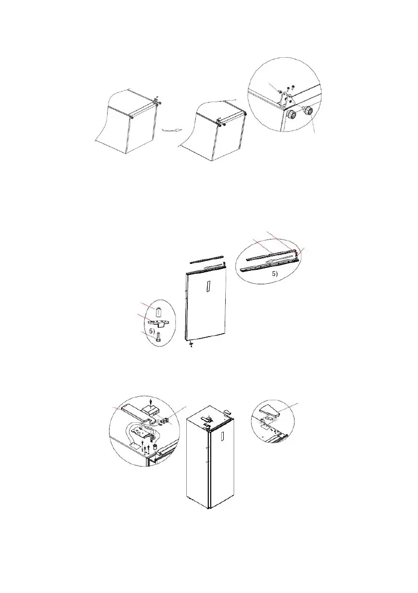 accesorios. Coloque la puerta en la bisagra inferior y monte la bisagra superior izquierda, la tapa de la